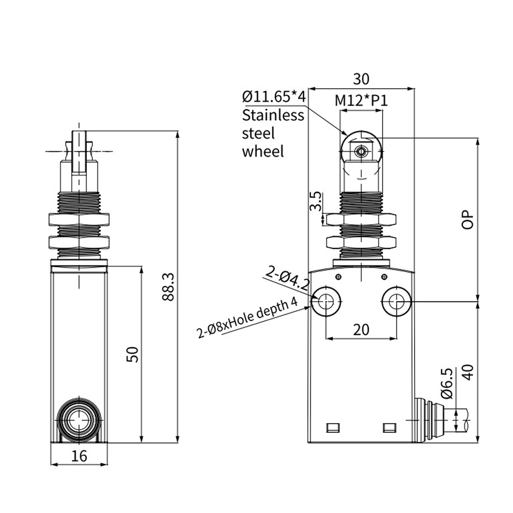 | 25 | Вертикальный шариковый тип верхнего поршня M12 (металлический шарик) | Только конец NC имеет принудительное отключение | ||