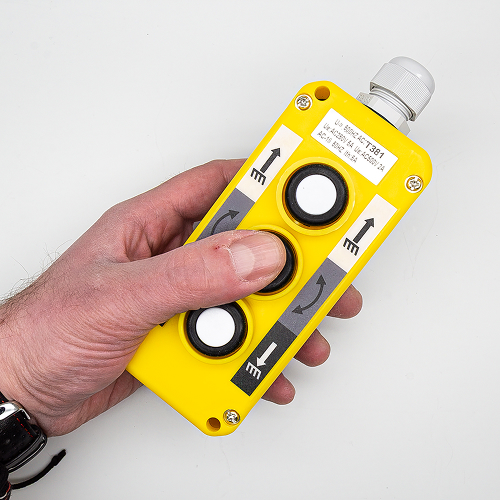 Благодаря резиновой оболочке кабеля и водонепроницаемой уплотнительной ленте устройство обладает хорошей пыле- и влагозащитой (IP65), поэтому оно особенно хорошо подходит для использования на открытом воздухе, в дождливую и снежную погоду, в пыльных условиях и в местах, где руки могут быть влажными, например на электрической тали, на открытой конвейерной ленте для материалов, для дистанционного управления электрооборудованием в строительной отрасли.