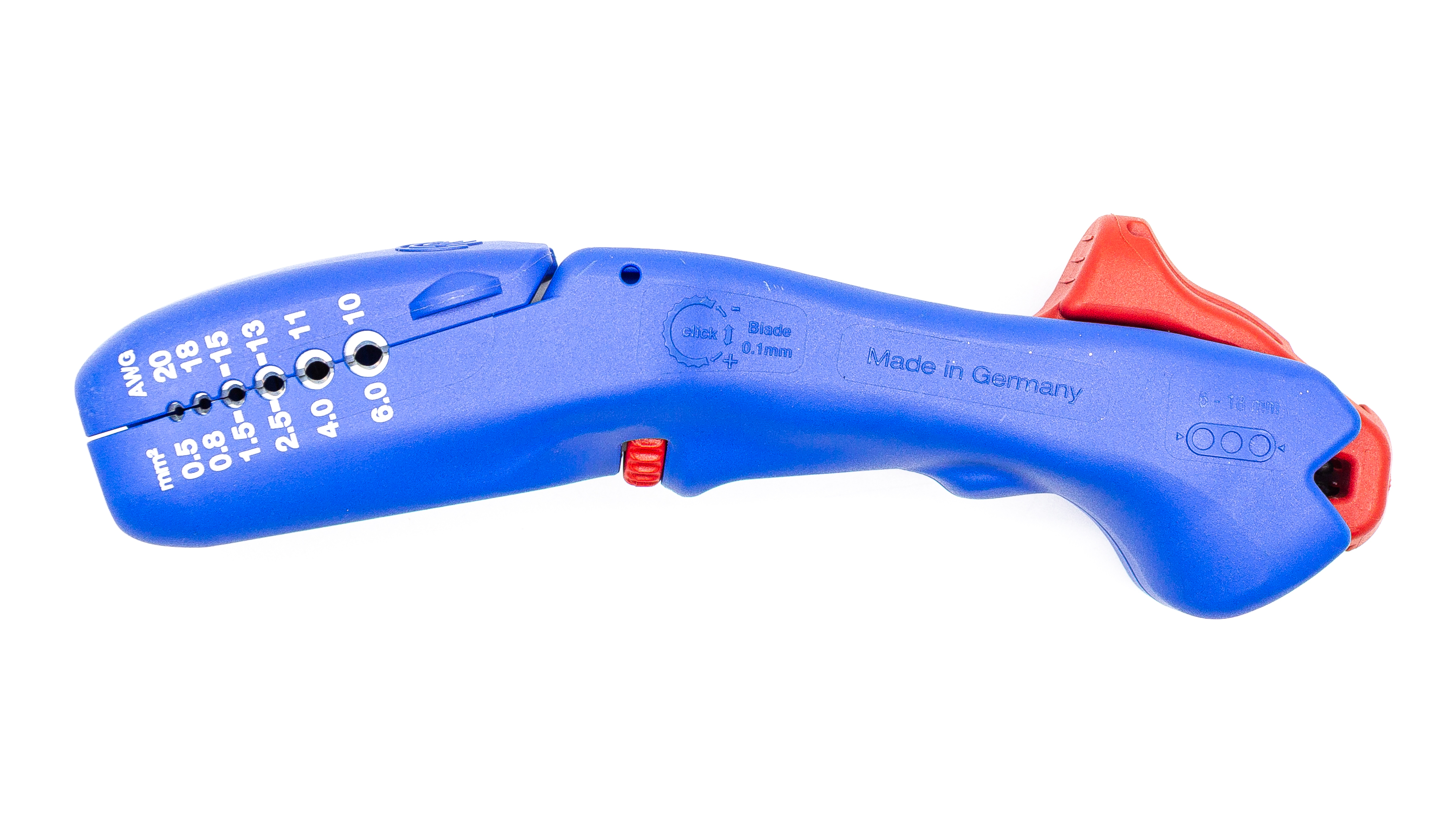 - Позволяет снимать изоляцию в диапазоне сечений от 0,5 до 6,0 мм.кв.
