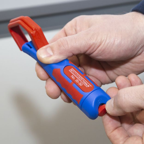 Профессиональный инструмент для работы с кабелями максимального сечения. Специализированный нож от немецкого бренда WEICON, разработанный для снятия внешней изоляции с магистральных, бронированных и силовых кабелей диаметром от 35 до 50 мм. Это решение премиум-класса для энергетиков, промышленных электриков и монтажных бригад, работающих с кабельной продукцией крупного сечения на трансформаторных подстанциях, в распределительных устройствах и на промышленных объектах.