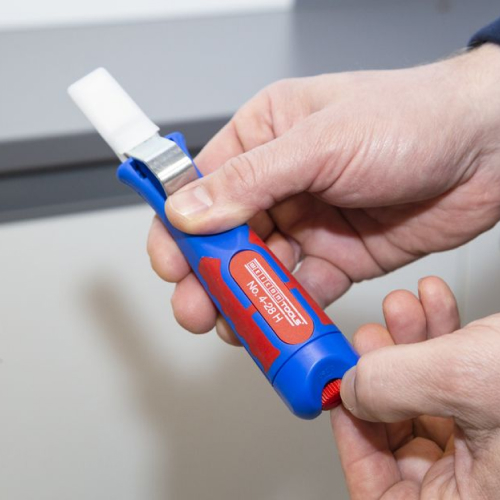 - Прецизионная регулировка глубины реза: Точная настройка вылета лезвия обеспечивает аккуратное снятие изоляции без риска повреждения токопроводящих жил, даже при переходе между кабелями разной толщины.