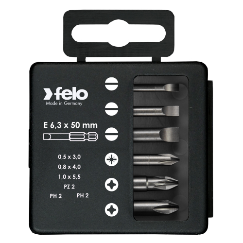 Набор бит SL/PZ/PH Industrial 50 мм в кейсе, 6 шт, Felo 03092516 — это универсальный комплект для работы с крепежом самых популярных типов: прямой, Pozidriv и Phillips