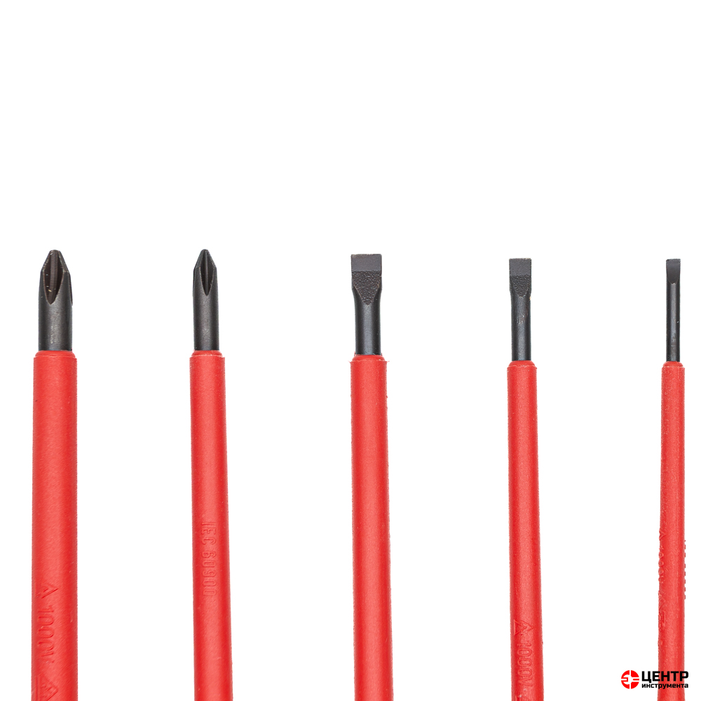 Каждая отвертка в наборе является полноценным диэлектрическим инструментом. Стержень изготовлен из высококачественной хромомолибденованадиевой стали (CrMoV) и полностью покрыт изоляционным материалом, а рукоятка обеспечивает надежный барьер. Это позволяет безопасно работать с оборудованием под напряжением (в пределах характеристик, указанных производителем).