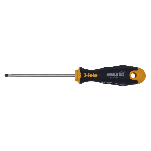 Отвертка Ergonic плоская шлицевая 4,0*0,8*100 Felo предназначена для монтажно-демонтажных работ с крепежом сечения SL 4,0